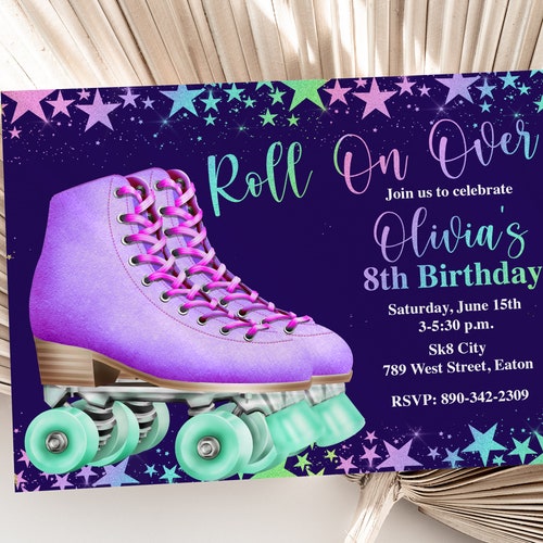 Roller Skate Birthday Party Invitation Skating Roller Etsy